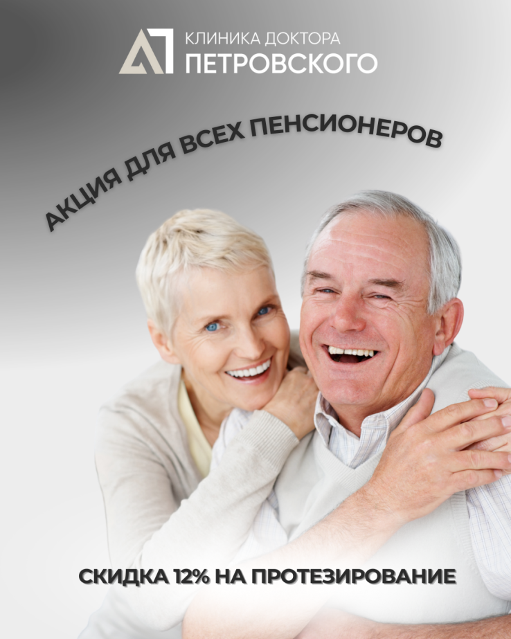 В нашей клинике для пенсионеров действует скидка 12% на протезирование зубов. Акция уже началась и продлится до 30 сентября — самое время подарить себе или близким комфорт и уверенность в улыбке.